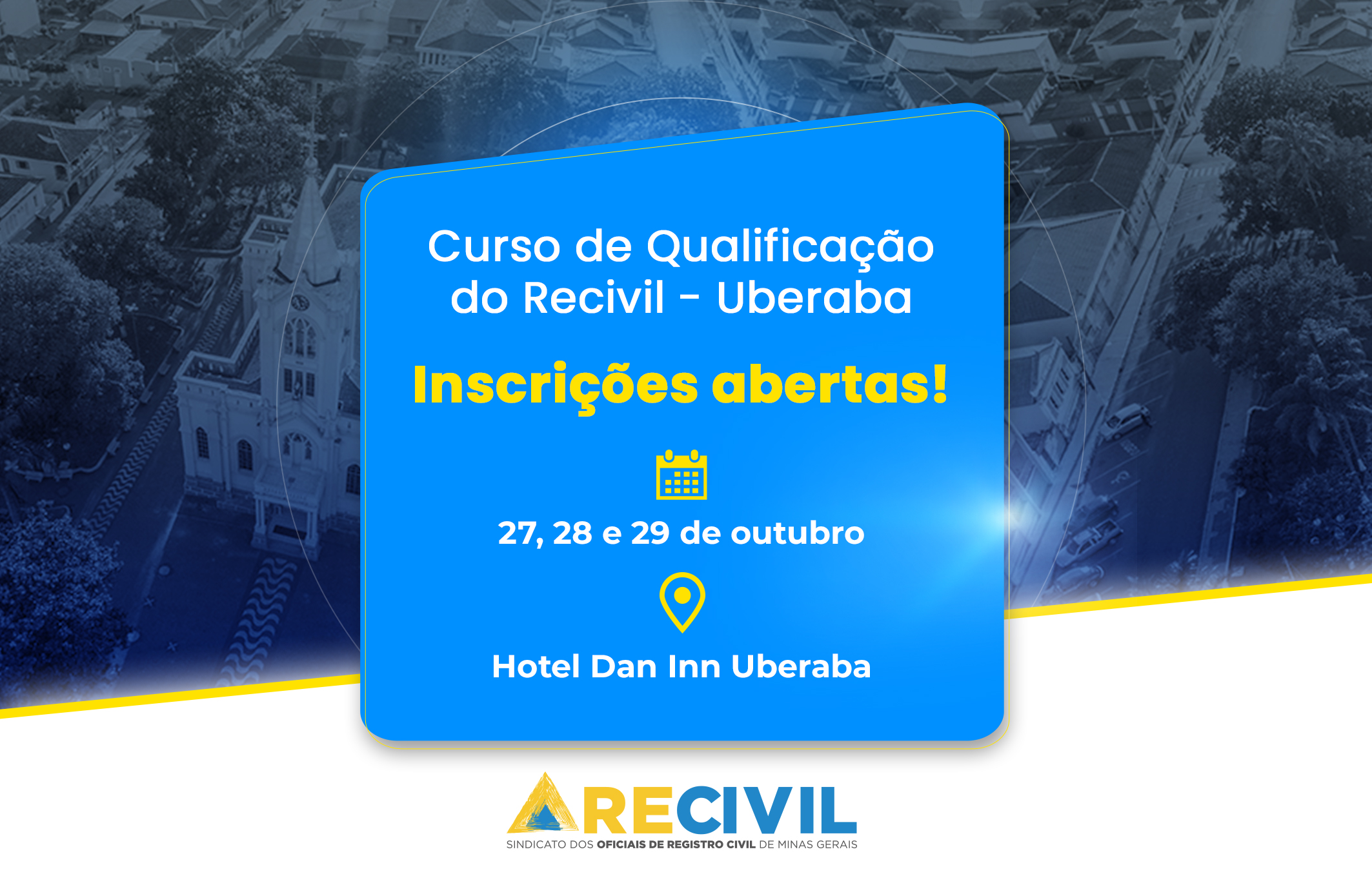 Nos dias 27, 28 e 29 de outubro, o Recivil promoverá, na cidade de Uberaba, o Curso de Qualificação para capacitação e uniformização da classe cartorária através de palestras com temas relativos à área e a prática diária das serventias.
