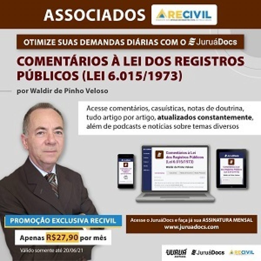 Com assinatura mensal da editora Juruá Docs é possível ter acesso irrestrito aos comentários, casuísticas, notas de doutrina, artigos atualizados constantemente no acervo da empresa. Por meio da parceria com o Recivil, os associados do sindicato podem contratar a assinatura mensal com desconto, no valor de R$27,90, até o dia 20 de junho.