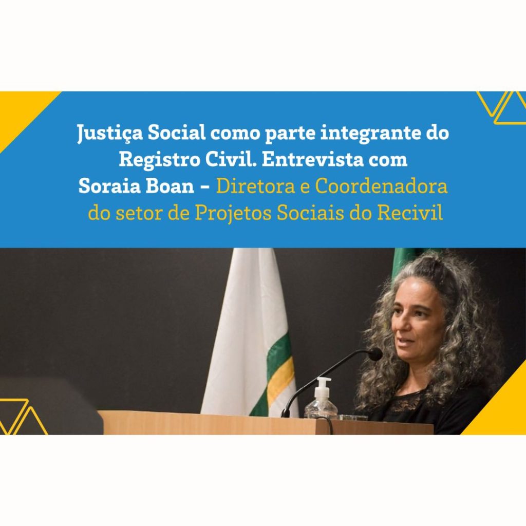 Soraia Boan: Os cartórios de Registro Civil de Minas Gerais, com apoio do Recivil, têm atuado, no que se refere aos projetos sociais, mais enfaticamente para atender a população em situação de vulnerabilidade.