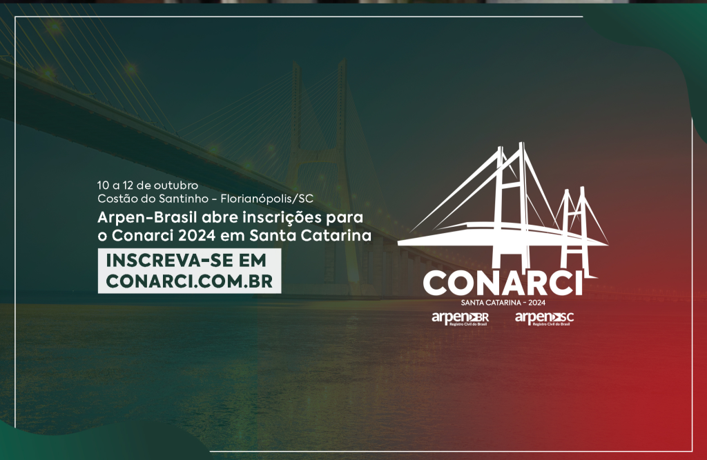 Estão abertas as inscrições para o Conarci 2024 (Congresso Nacional de Registro Civil das Pessoas Naturais). Com o tema “O Registro para Além do Registro: A Atuação do Registro Civil na Concretização de Direitos, Fomento Econômico e Eficiência Estatal”, o maior evento do registro civil brasileiro chega à sua 30ª edição. Faça já sua inscrição aqui: https://conarci.com.br/ .