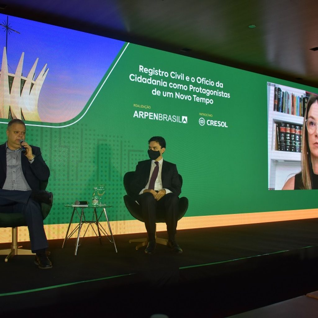 A palestra contou, ainda, com a participação de Márcio Evangelista, juiz auxiliar da Presidência do Tribunal de Justiça do Distrito Federal e dos Territórios (TJDFT), de Karin Regina Rick Rosa, advogada, professora na Universidade do Vale do Rio dos Sinos – UNISINOS, vice-presidente da Comissão Notarial e Registral do IBDFAM e coordenadora da Comissão Notarial e Registral do IBDFAM-RS e Pedro Ribeiro Giamberardino, advogado da Arpen-Brasil.