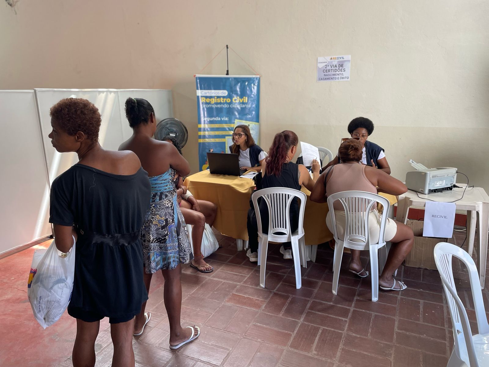 Na última terça-feira (12/03), os cartórios de Registro Civil, por meio do Sindicato dos Oficiais de Registro Civil de Minas Gerais (Recivil), participaram da 3ª edição do Rua de Direitos – Especial Mulheres, realizada no Santuário Nossa Senhora da Conceição dos Pobres, no Bairro Lagoinha, no Centro de Belo Horizonte. Neste ano, cerca de 150 mulheres em situação de vulnerabilidade social foram atendidas, com 41 solicitações destinadas à emissão de segunda via de certidões de nascimento, casamento e óbito.