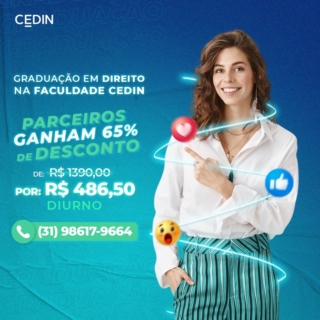 Para se cadastrar e ter acesso ao desconto acesse o link https://www.cedin.com.br/graduacao-em-direito/