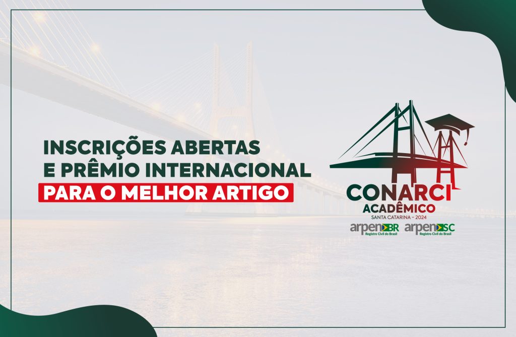 O Conarci Acadêmico 2024, promovido pela Associação Nacional de Registradores de Pessoas Naturais (Arpen Brasil) e pela Associação dos Registradores Civis das Pessoas Naturais do Estado de Santa Catarina (Arpen-SC), está com inscrições abertas e é um convite à excelência acadêmica e profissional. O evento ocorrerá no dia 10 de outubro de 2024, em Florianópolis/SC, e oferece uma oportunidade imperdível para acadêmicos e profissionais do Direito apresentarem seus trabalhos sobre temas inovadores no campo do Direito Registral e Notarial.