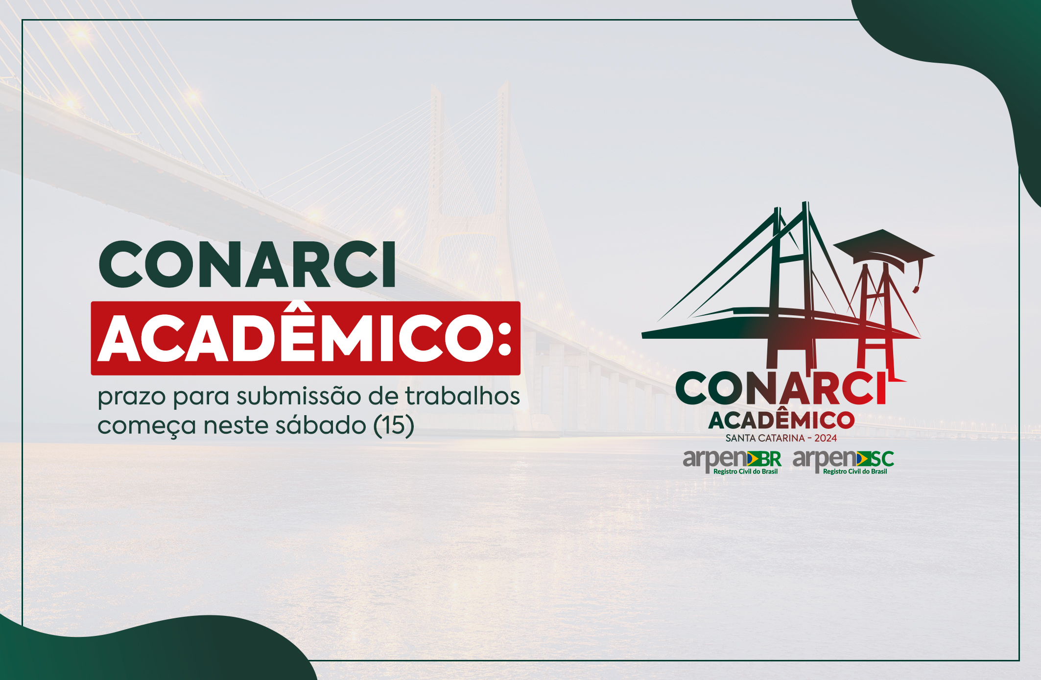 A partir deste sábado (15), os candidatos do Conarci Acadêmico estão convidados a submeter seus trabalhos para o evento. Voltado para estudantes e bacharéis em Direito, oficiais e substitutos de Registro Civil das Pessoas Naturais, notários, registradores e demais profissionais da área jurídica, o concurso é de natureza científica e ocorrerá durante o Conarci 2024, que será realizado em Florianópolis no dia 10 de outubro.