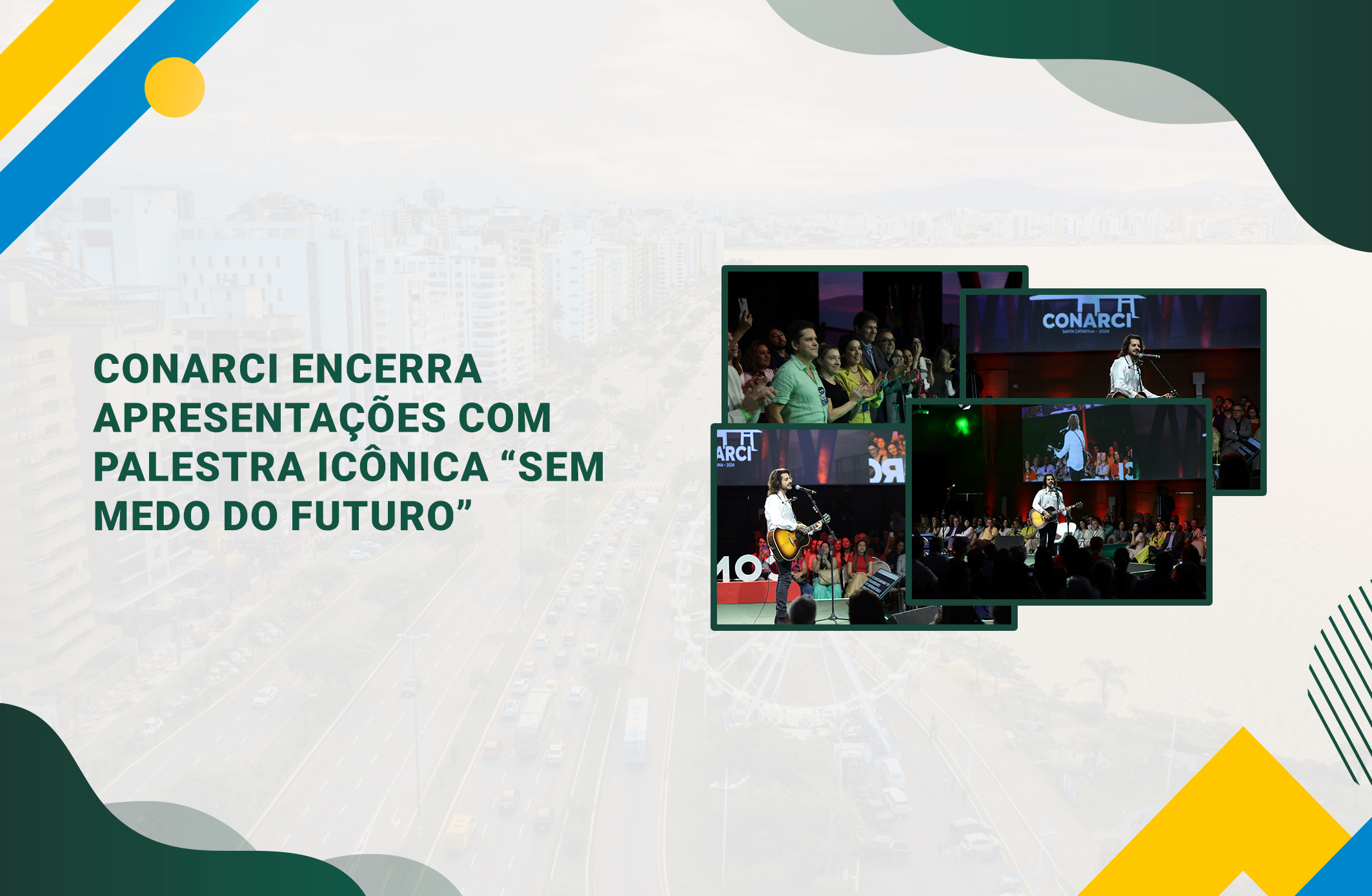 Florianópolis (SC) – “Sem medo do futuro”, a palestra do compositor e guitarrista Marco Túlio, da banda Jota Quest, encerrou o último dia do Conarci 2024, que, durante três dias, proporcionou aprendizado, networking e lazer em um dos cenários mais deslumbrantes do sul do país. De forma leve e cantada, Marco Túlio apresentou, em um auditório lotado com mais de 600 pessoas, provocações, reflexões e inquietudes.
