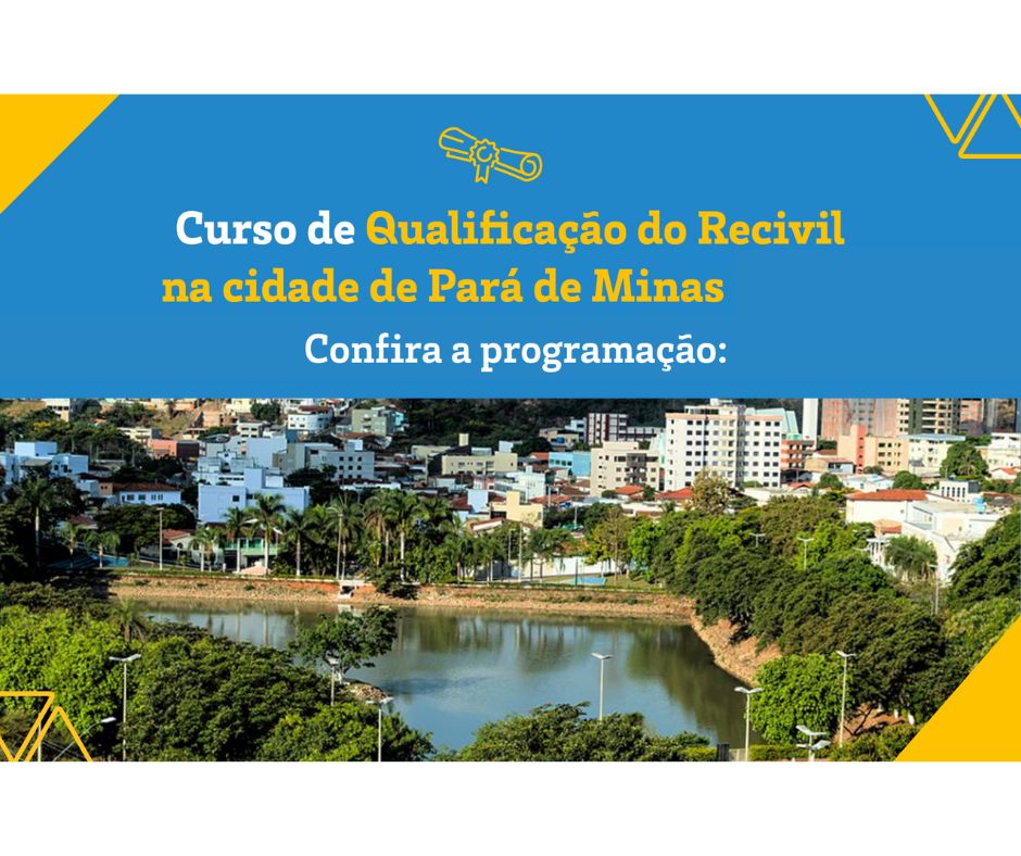 O Curso de Qualificação promovido pelo Recivil acontecerá nos dias 21,22 e 23 de outubro, no Hotel Suntory, localizado na avenida Professor Melo Cançado, 2376 Bairro Belvedere,  na cidade de Pará de Minas.