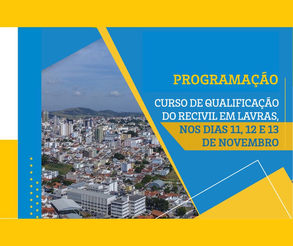 O Curso de Qualificação promovido pelo Recivil na cidade de Lavras (MG) acontece nos dias 11, 12 e 13 de novembro.
