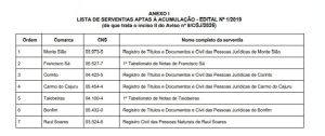 I – a acumulação dos serviços notariais e de registro não providos por ausência de investidura do candidato aprovado no Concurso Público de Provas e Títulos para Outorga de Delegações de Notas e de Registro do Estado de Minas Gerais regido pelo Edital nº 1/2019 deverá ser realizada no prazo máximo de 60 (sessenta) dias, contados a partir de 23 de janeiro de 2025;