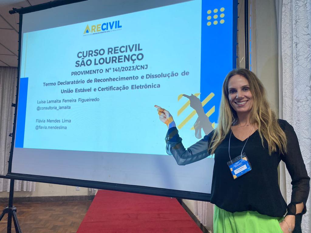 Flávia Mendes, advogada do Recivil, conduziu duas palestras, Pontos Relevantes sobre o Casamento e Provimento 141, que trata da conversão de União Estável (UE) em casamento. Marcadas pela participação dos alunos, os painéis abordaram a idade mínima para casar, a importância do consentimento para a execução de atos do Registro Civil e cuidados que o oficial deve ter ao realizar a conversão de uma UE em matrimônio.
