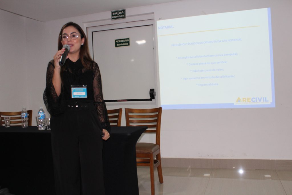 Logo em seguida, a advogada do Recivil, Flávia Mendes, abordou o tema “Retificação e alteração de registro com as mudanças da Lei Federal nº 14.382/2022 e cobrança dos emolumentos pelo e-Protocolo”, ferramenta destinada ao envio de documentos eletrônicos representativos de atos que devem ser cumpridos por outras serventias.