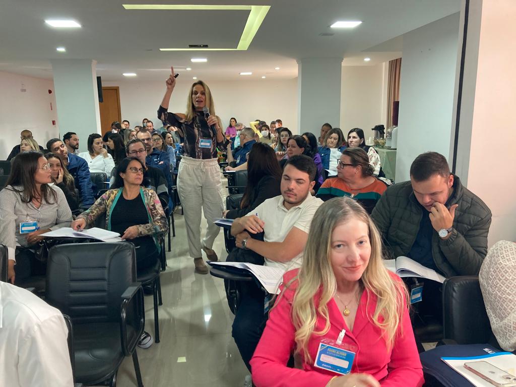No segundo dia do curso (30/07), os participantes contaram com um momento de descontração com música e dança, parte da palestra “Reflexões sobre a atividade registral”, apresentada pela registradora civil de João Monlevade, Rosa Bedetti.