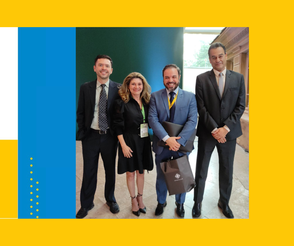 Nos registros abaixo estão: O presidente da Arpen Bahia, Daniel Sampaio, Wellington de Lima Mota, vice-presidente do Recivil, Genilson Gomos, presidente do Recivil e Cristiano Cassetari, vice-presidente da Arpen Bahia.