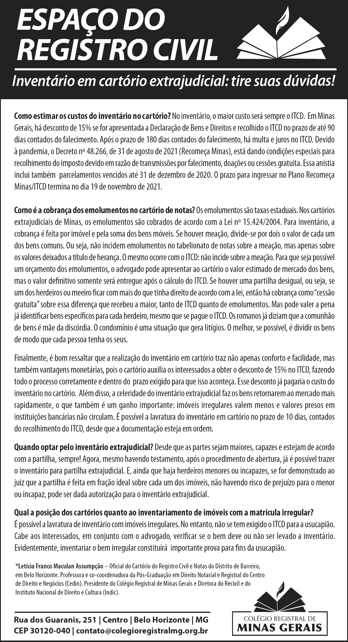 Blog Espaço do Registro Civil – Inventário em cartório extrajudicial: tire suas dúvidas! Giovanna 4 anos atrás Pile of colorful magazines on a white table Posts relacionados Judiciário aprova fixação de alimentos em benefício de menor devolvido pelos pais adotivos Giovanna 12 anos ago Casal gay é o 1º a obter separação legal e partilha Giovanna 12 anos ago Artigo – Concubinato, união estável e regime de bens – Por Maykon Felício Damascena Giovanna 8 anos ago
