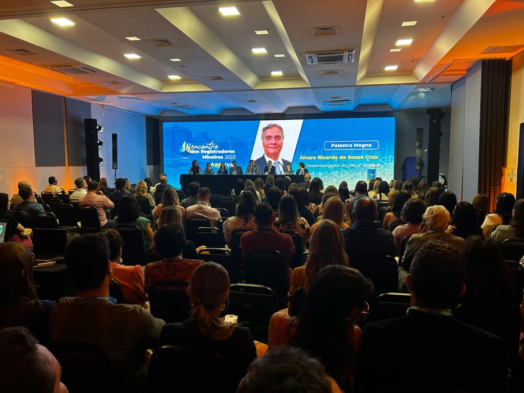 Logo após a abertura oficial do II Encontro dos Registradores Mineiros, foi a vez do desembargador do Tribunal Regional Federal da 6ª Região Álvaro Ricardo de Souza Cruz proferir a palestra magna, abordando os direitos fundamentais e a relação com o trabalho realizado pelos registradores civis.