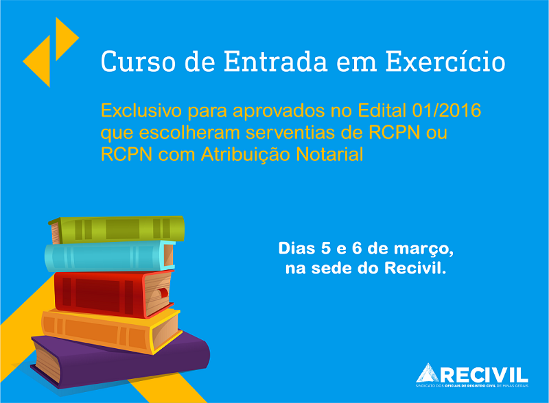 [vc_row][vc_column][vc_column_text]O Recivil abre inscrição para o Curso de Entrada em Exercício voltado, exclusivamente, aos candidatos aprovados no Edital 01/2016 que escolheram serventias de Registro Civil das Pessoas Naturais ou serventias de Registro Civil com Atribuição Notarial.
