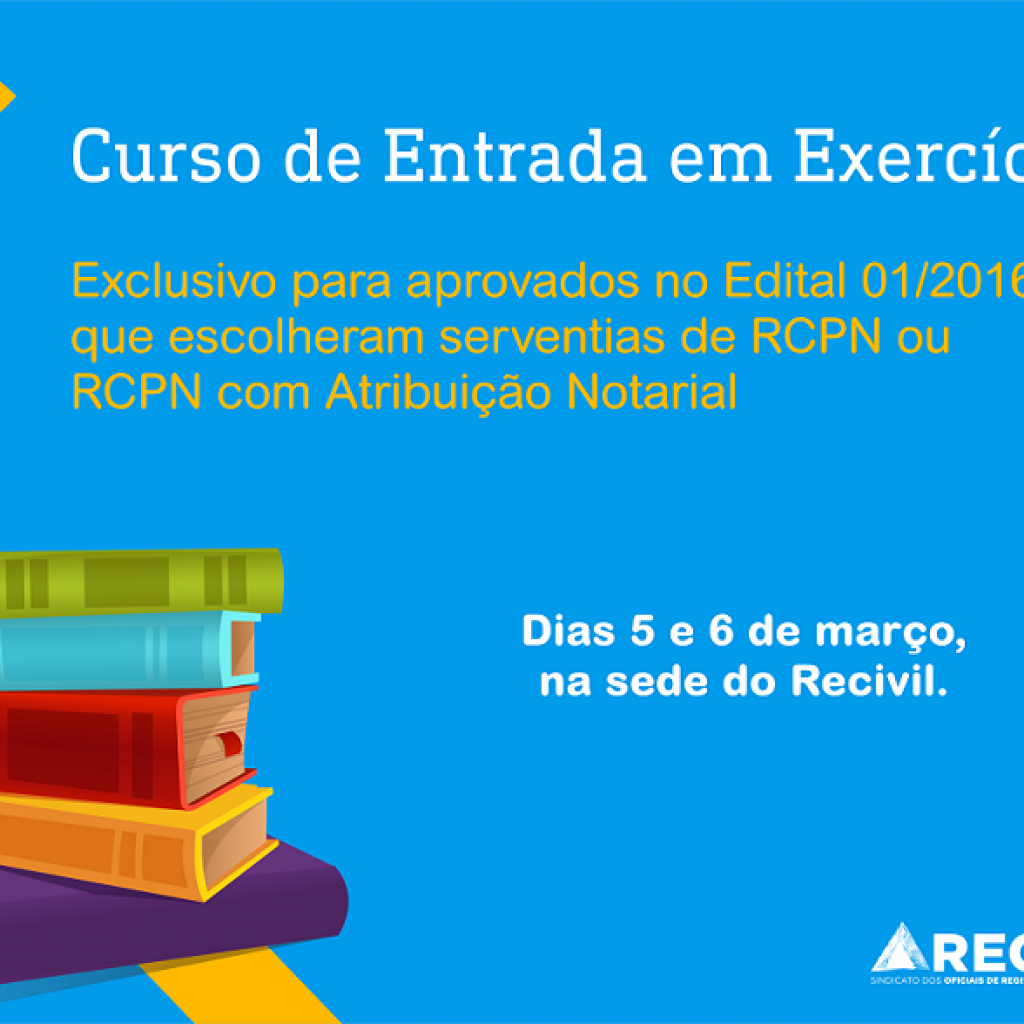 [vc_row][vc_column][vc_column_text]O Recivil abre inscrição para o Curso de Entrada em Exercício voltado, exclusivamente, aos candidatos aprovados no Edital 01/2016 que escolheram serventias de Registro Civil das Pessoas Naturais ou serventias de Registro Civil com Atribuição Notarial.