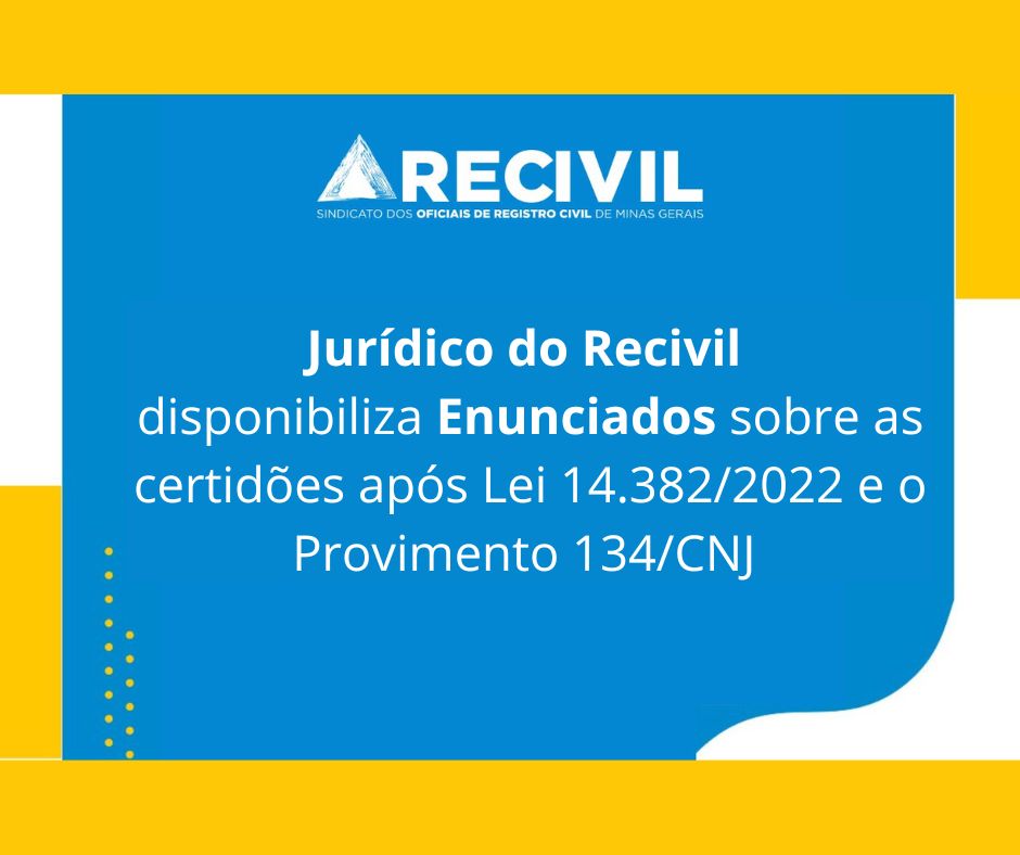 Já estão disponibilizados os enunciados contendo as diretrizes para os registradores civis em relação as certidões após a Lei 14.382/2022 e o Provimento 134/CNJ.