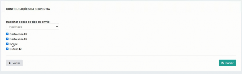 Mas para o cidadão ter direito a mais opções de envio na plataforma CRC Minas, é preciso que o oficial habilite cada uma delas na própria Central. Com a habilitação, o cartório permite que as segundas vias sejam enviadas por carta com AR (Aviso de Recebimento), serviço que permite comprovar a entrega do documento ao destinatário. Além de Sedex e Sedex 10, conforme a urgência do usuário. Carta sem AR (sem aviso de recebimento), categoria que inviabiliza a prova do não recebimento da certidão. E ainda escolher por outros tipos de serviços de correio que desejar.