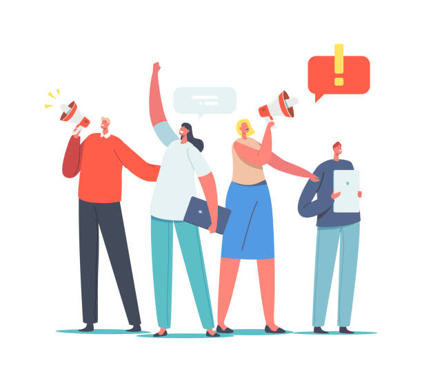 Characters Holding Digital Devices and Megaphone Call to Sign Online Petition. Law-abiding Citizen, City Dwellers Execute their Rights and Duties in Political Life. Cartoon People Vector Illustration