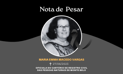 O Recivil comunica, com pesar, o falecimento de Maria Emma Macedo Vargas, oficiala do Cartório de Registro Civil das Pessoas Naturais de Monte Belo, ocorrido nesta terça-feira (27/06).
