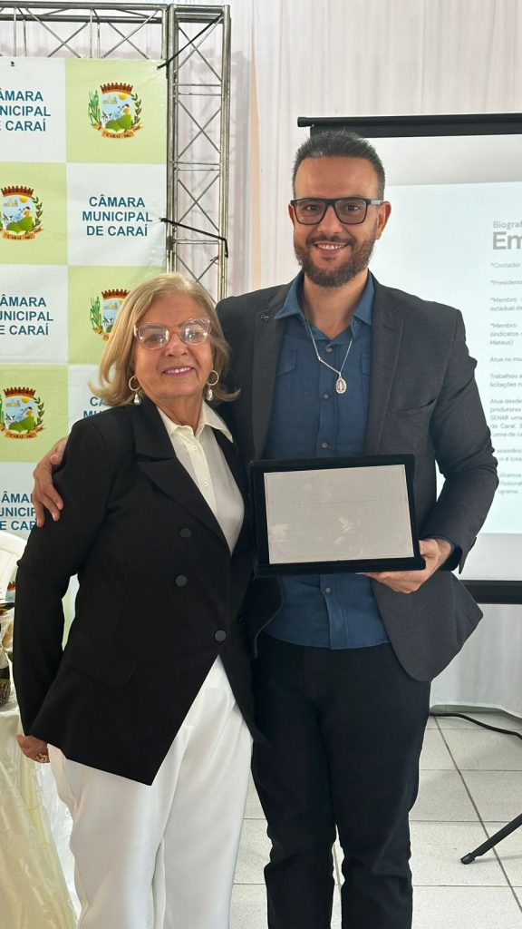 Na última quinta-feira (27/06), o oficial de Registro Civil e Notas, Maykon Felício Damascena, recebeu o título de Cidadão Honorário pela Câmara Municipal de Caraí. A outorga do título, entregue pela presidente da Câmara, vereadora Amina Gomes Ribeiro, em sessão solene, contou com a presença da esposa do oficial, Jullyane Hellen Damascena, da mãe, Janilda Damascena, do Padre José Roney e de diversos vereadores.