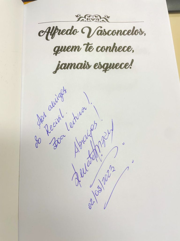 Renato Bianchetti: Em outubro de 1992, após a emancipação político-administrativa de Alfredo Vasconcelos e diante de vasta pesquisa, consegui reunir fatos e fotos no intuito de escrever a nossa história, preservando assim, a memória histórica e cultural de nosso povo. Não foi fácil, pois foram anos de pesquisas e de procura de fotos. Mas, enfim, consegui lançar uma simples edição, a qual resultou em boa parte de elogios.