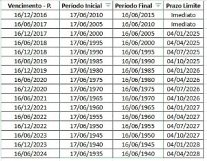 O período entre 17/06/1930 e 16/06/1935 terá prazo limite em 04/07/2028.