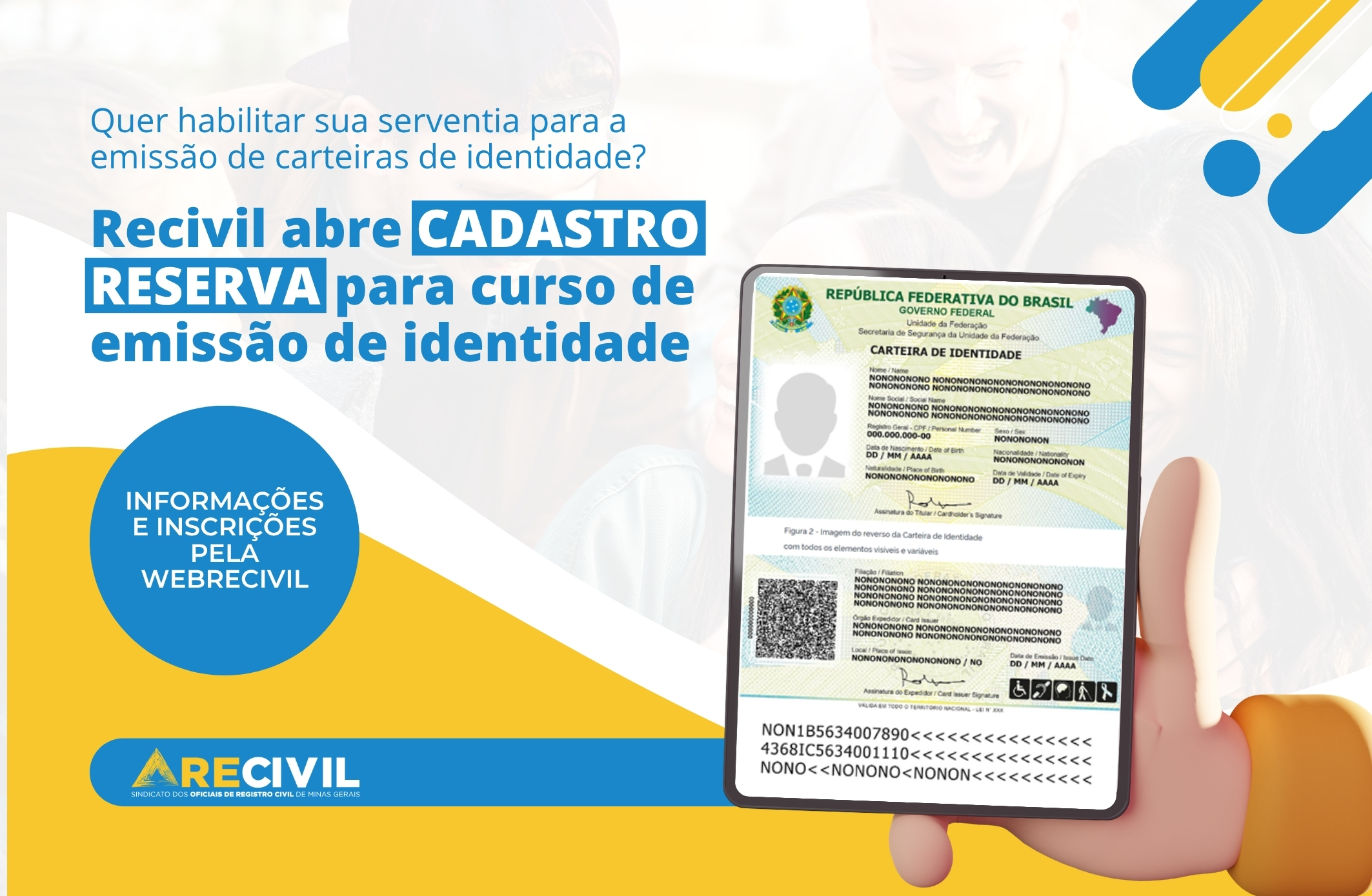Recivil abre cadastro de reserva para cartórios interessados em emitir carteiras de identidade em Minas Gerais