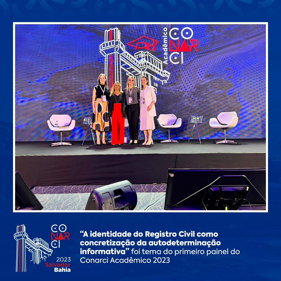 O primeiro painel do Conarci Acadêmico 2023, realizado na manhã desta quinta-feira (28), trouxe trabalhos sobre o tema “Identidade do Registro Civil como Concretização da Autodeterminação Informativa” para o centro dos debates do Registro Civil de Pessoas Naturais. O evento científico que chega a sua segunda edição, integra a programação do XXIX Congresso Nacional de Registro Civil – Conarci 2023, organizado pela Associação Nacional dos Registradores de Pessoas Naturais (Arpen-Brasil).