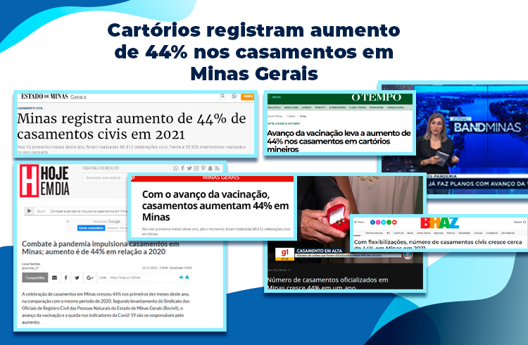 Impulsionados pela confiança proporcionada pelo aumento da vacinação e pela diminuição do número de óbitos causados pela Covid-19 em todo o Estado, os casamentos voltaram a crescer em Minas Gerais após um período de queda expressiva no ano passado. Dados levantados pelos Cartórios mineiros apontam um crescimento de 43,8% entre janeiro e outubro de 2021 em comparação com o mesmo período do ano passado.