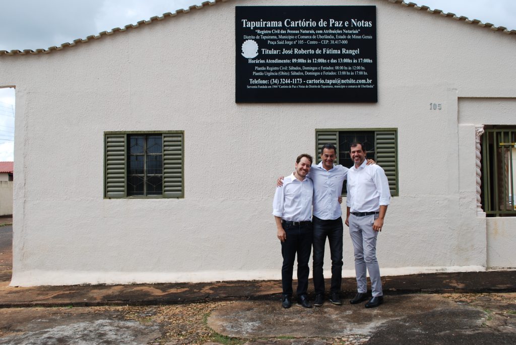 Com objetivo de conhecer a realidade das serventias da região de Uberlândia, o presidente do Recivil, Genilson Gomes, acompanhado pelo diretor regional da cidade e oficial e Registro Civil e Notas de Miraporanga, Jovino Cheik, e pelo suplente do cartório de paz e notas de Tapuirama, Jeferson Resende Rangel, visitou, nos dias 17 e 18, os cartórios de Registro Civil das cidades de Tapuirama, Nova Ponte, Iraí de Minas, Romaria, Indianópolis e Uberlândia.