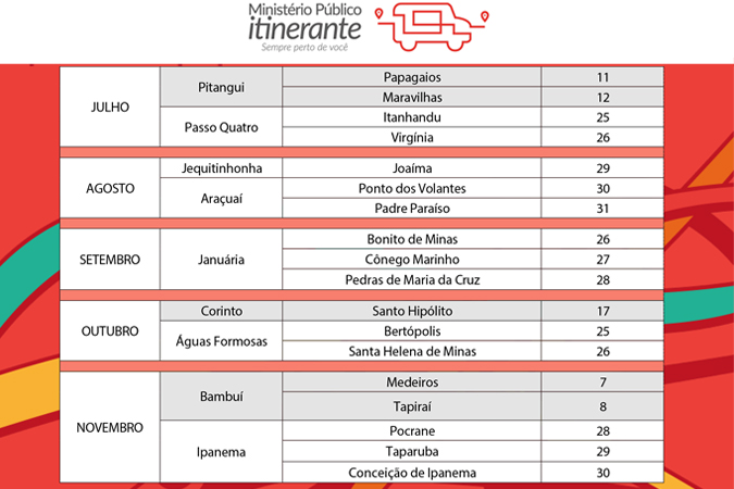 O Ministério Público Itinerante é um projeto que leva acesso à Justiça e ao conhecimento dos direitos básicos de cada cidadão. O Recivil é um dos parceiros que visitam cidades que não têm acesso fácil a Promotorias de Justiça e realizam atividades e serviços multidisciplinares O projeto foi lançado em 2010 e atendeu cerca de 240 municípios até fevereiro de 2020. Após o período de pandemia, os atendimentos foram retomados em 2022, em 30 municípios indicados pelos promotores de Justiça das comarcas do estado.