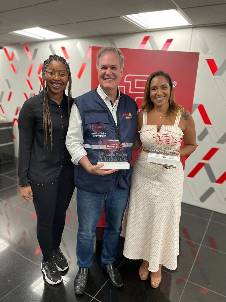 Em seguida, o Ministério Público homenageou as empresas parceiras pelos serviços prestados em prol do cidadão. As entidades e os parceiros do MP Itinerante homenageados no evento foram: a presidente do Tribunal Regional Federal da 6ª Região, desembargadora Mônica Sifuentes; a 3ª vice-presidente do Tribunal de Justiça de Minas Gerais, desembargadora Ana Paula Nanneti Caixeta, e o juiz de direito Marcus Vinícius Mendes do Valle; a defensora pública-geral de Minas Gerais, Raquel da Costa Dias; o chefe de gabinete do procurador-geral do Ministério Público de Contas de Minas Gerais, Éverton Moebus; a secretária de Estado de Desenvolvimento Social, Elizabeth Jucá; o corregedor-geral Adjunto do MPMG, diretor do Sicoob Jus-MG e idealizador do MP Itinerante, Mauro Flávio Ferreira Brandão; o presidente da Ordem dos Advogados Do Brasil-Seção Minas Gerais, Sérgio Leonardo; a presidente do Servas, Christiana Noronha Renault de Almeida; o presidente da Cemig, Reynaldo Passanezi Filho; o presidente da Copasa, Guilherme Augusto Duarte de Faria; o diretor administrativo e financeiro da Emater-MG, Cláudio Bortolini; A diretora-presidente do CeMais, Marcela Giovanna; a supervisora de Projetos Sociais da Recivil, Leila Xavier; a analista de Promoção Social da Gerência de Formação Profissional Rural e Promoção Social do Senar, Michelle Camila de Paula; a superintendente estadual dos Correios em Minas Gerais, Ana Carolina de Souza Oliveira; a técnica do Seguro Social e representante do Programa de Educação Previdenciária da Superintendência Regional Sudeste do INSS, Júnia Guedes Machado; o médico veterinário José Lasmar Lalado; o artista da cultura hip-hop, Mc Kroif (Wallace Gonçalves da Silva); o diretor-presidente da Empresa Mineira de Comunicação, Gusatvo Mendicino de Oliveira; o presidente dos Supermercados BH, Pedro Lourenço; e o promotor de Justiça aposentado Edson de Resende Castro, ex-coordenador da Coordenadoria Estadual de Apoio aos Promotores Eleitorais (Cael) e da Central de Apoio Técnico do MPMG (Ceat), pelas dezenas de palestras e reuniões, acerca de temas eleitorais, proferidas ao longo dos anos no MP Itinerante.