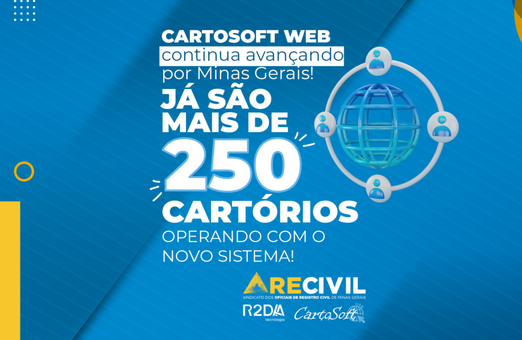 Desenvolvido em 2023 e implementado nos cartórios mineiros a partir de janeiro de 2024, o CartosoftWeb já é realidade em mais de 250 serventias. O novo programa para Cartórios de RCPN, versão WEB, cumpre as exigências de tecnologia da informação e segurança de rede contidas no Provimento n. 74 da Corregedoria Geral de Justiça de Minas Gerais.
