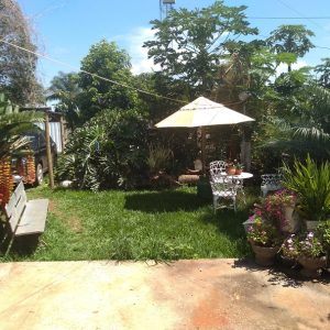 A casa onde moro tem um quintal de mais ou menos 400 metros quadrados, e nele resolvi, quando para aqui mudei, plantar flores e árvores frutíferas, para tornar o ambiente mais alegre, aconchegante e desestressante.