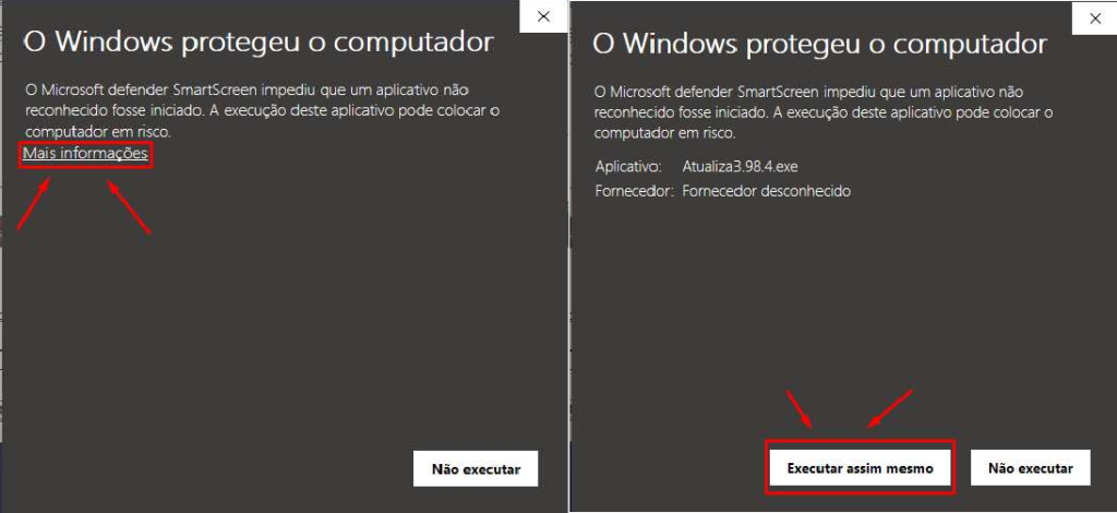 4º Vai ser exibido uma janela de segurança do navegador clique em Mais informações e depois em Executar assim mesmo, lembrando que o Cartosoft deve estar fechado em todas as estações conforme imagem abaixo: