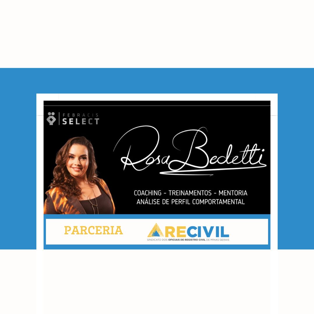 O Recivil firmou mais um convênio que beneficia os cartórios de RCPN de Minas Gerais. Agora os registradores mineiros podem contar com os serviços da empresa Rosa Bedetti Desenvolvimento Humano Ltda, aproveitando o desconto de 20% em treinamentos de inteligência emocional, processos de coaching individual ou em grupo e análises de perfil comportamental.