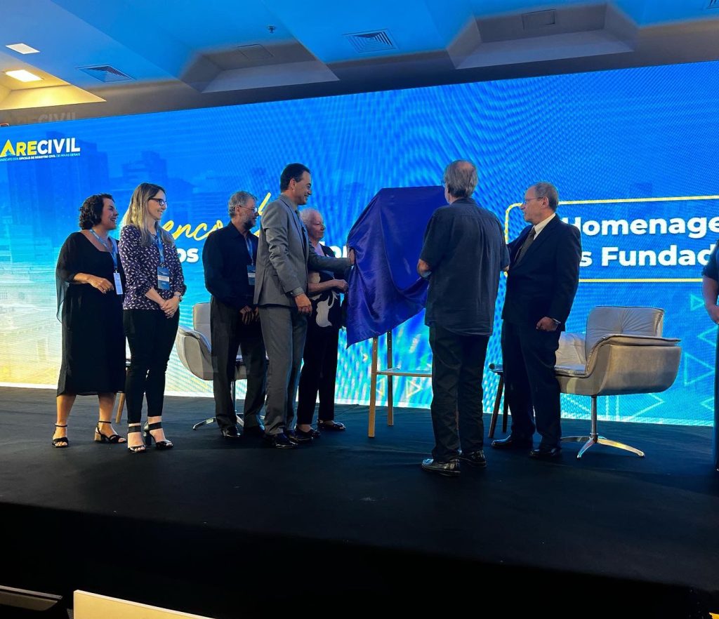 Após a homenagem, o primeiro presidente da Associação e o atual presidente do Sindicato fizeram o descerramento simbólico da placa comemorativa que será afixada na entrada da sede do Sindicato dos Oficiais de Registro Civil de Minas Gerais – Recivil, na Rua Timbiras 2318, bairro de Lourdes, em Belo Horizonte.