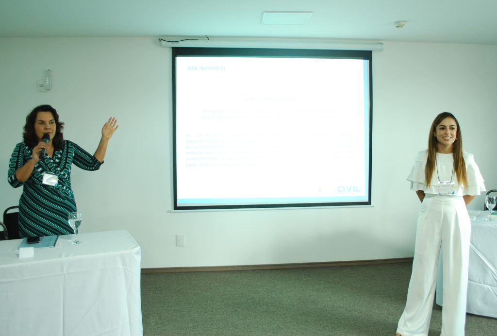 A oficiala de Registro Civil e Notas de Cachoeira da Prata, Rafaela de Souza, e a oficiala de Registro Civil e Notas do Barreiro e diretora do Recivil, Letícia Maculan, apresentaram o tema “Ata notarial”.