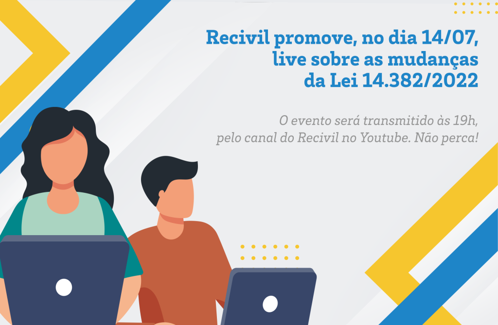 Com as mudanças trazidas pela Lei14.382/2022, que dispõe sobre o Sistema Eletrônico dos Registros Públicos (Serp), o Recivil irá promover no dia 14 de julho, às 19h, uma live para discutir e esclarecer pontos sobre as mudanças da referida lei.