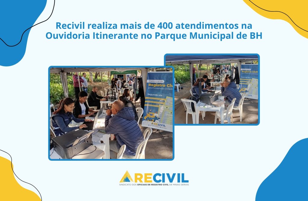 Nos dias 8 e 9 de julho, o Sindicato dos Oficiais de Registro Civil das Pessoas Naturais do Estado de Minas Gerais (Recivil) marcou presença no evento Ouvidoria Itinerante, realizado no Parque Municipal Américo Renné Giannetti, em Belo Horizonte. A iniciativa, promovida pela Ouvidoria-Geral do Estado de Minas Gerais , teve como objetivo ampliar o diálogo entre o cidadão e os órgãos públicos, oferecendo serviços gratuitos à população.