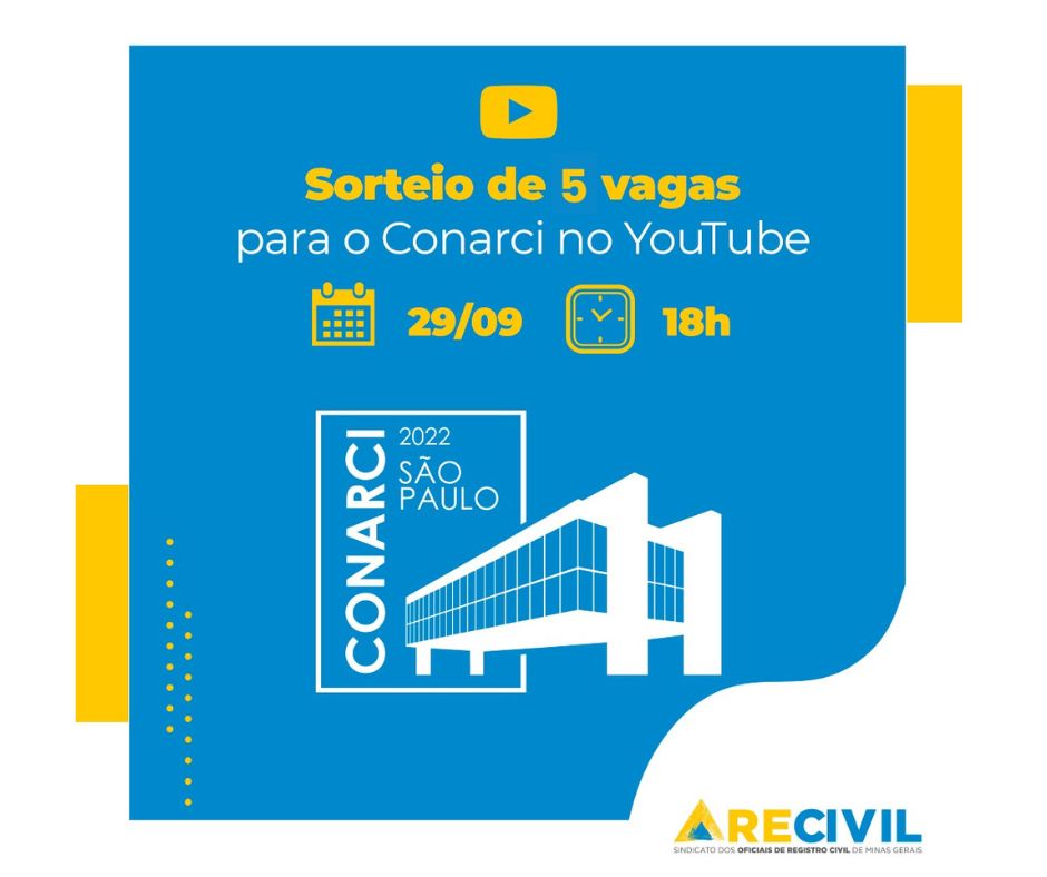 Nesta quinta-feira (29/09), às 18h, o Recivil irá sortear mais cinco vagas para o Conarci 2022. O sorteio será ao vivo e terá a participação do presidente do Recivil, Genilson Gomes.