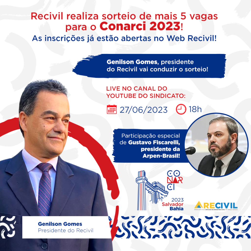 Recivil realiza sorteio de mais 5 vagas para o Conarci 2023