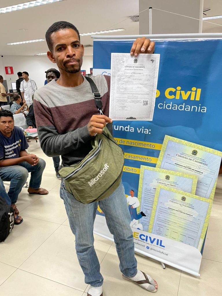 Antônio Carlos Santana fez questão de mostrar a segunda via da sua certidão de nascimento adquirida no Registre-se. Ele veio da Bahia e está em situação de rua e precisava do documento para trabalhar. “Agora com a minha certidão de nascimento em mãos posso pedir a minha identidade”, comemora