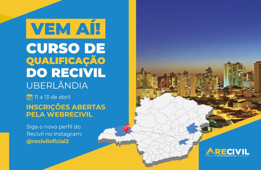 Depois de passar pelo Vale do Rio Doce e pela Zona da Mata, o Curso de Qualificação do Recivil chega ao Triângulo Mineiro. De 11 a 13 de abril, oficiais e prepostos da região têm um encontro marcado em Uberlândia, no hotel Porto Minas (Av. João Naves de Ávila, 3685 – Jardim Finotti, Uberlândia) onde participarão de três dias de palestras, discussões e atualizações sobre Registro Civil das Pessoas Naturais e Notas.