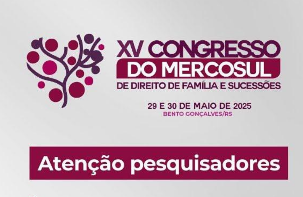 Até 15 de abril, o Instituto Brasileiro de Direito de Família, seção Rio Grande do Sul – IBDFAM-RS, recebe trabalhos científicos para serem apresentados durante o XV Congresso do Mercosul de Direito de Família e Sucessões, que acontece nos dias 29 e 30 de maio, em Bento Gonçalves.